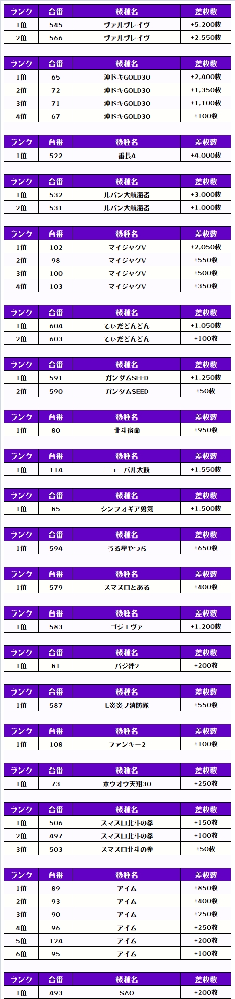 続く2位には【Lシンフォギア・33番台】の+5,200枚、そして3位には同率で【ヴァルヴレイヴ・545番台】の+5,200枚がランクインしました🎉🎉🎉🎉🎉