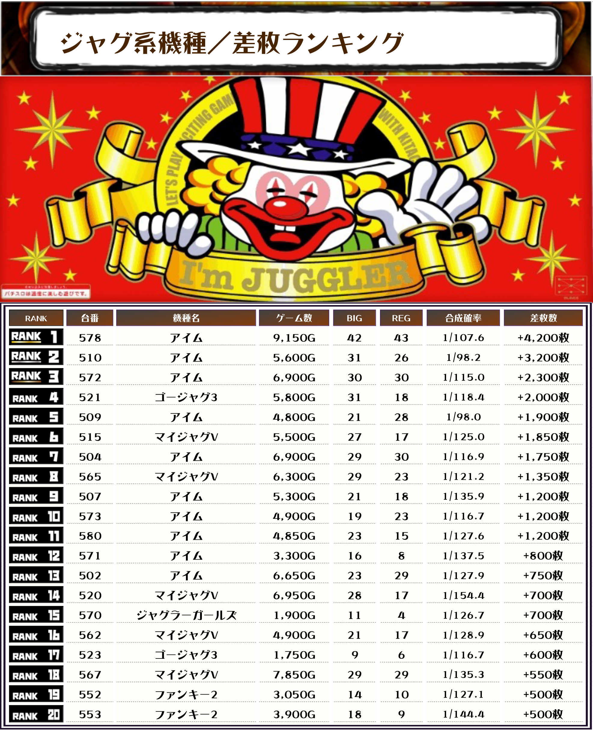 20台設置の内、10台がトップ20入りしているのを見ると、今回はアイムが主役だった…といっても過言ではないのかもしれませんね👀