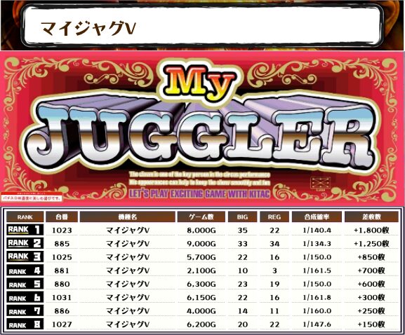 それではマイジャグラーの設置台数を確認していきましょう