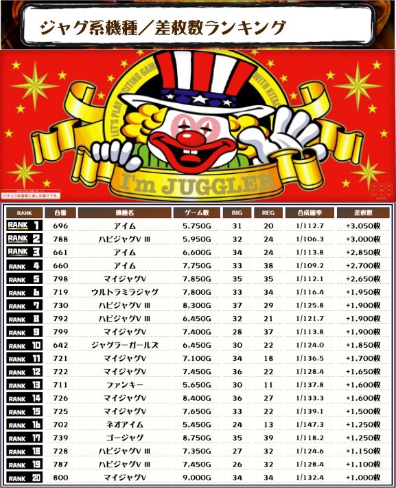 ランキングはアイム、ハピジャグが目立つ結果となりましたね👀