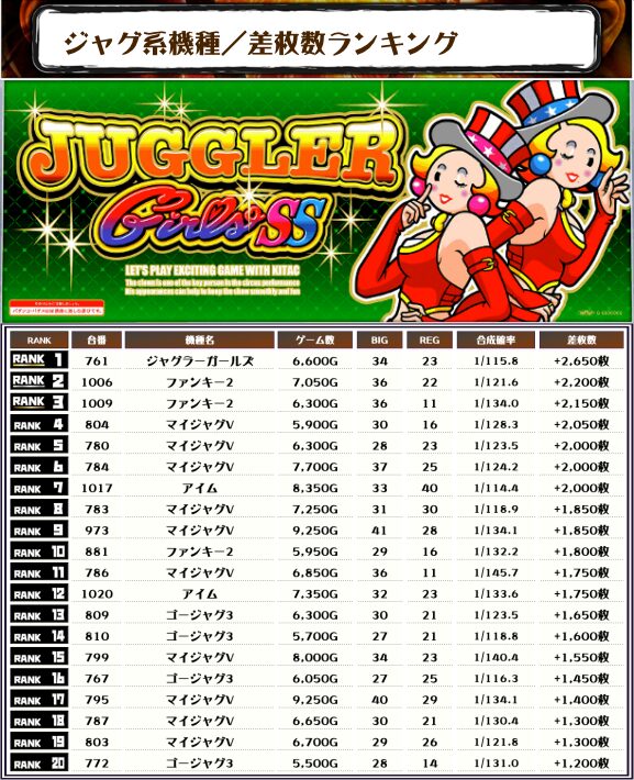 今回はジャグラーガールズが1位となりましたが、ファンキー2・マイジャグVの勢いもすごいですね🤩