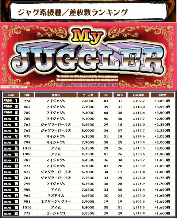 そして今回ジャグラーガールズも大健闘ですね✨ 複数台のランクインが目立ち、優秀台があったというのがわかりますね☺️