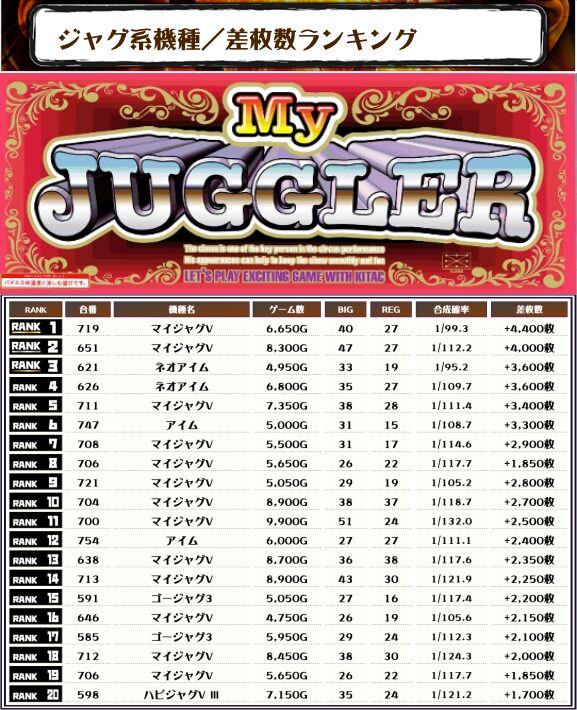 今回はやはり多台数のマイジャグVが強いですね〜😄