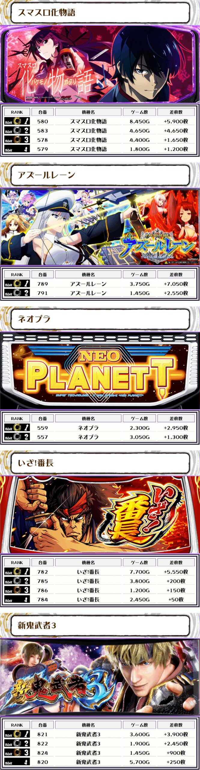 それでは、この日の機種別ランキングを見ていきましょう‼️
