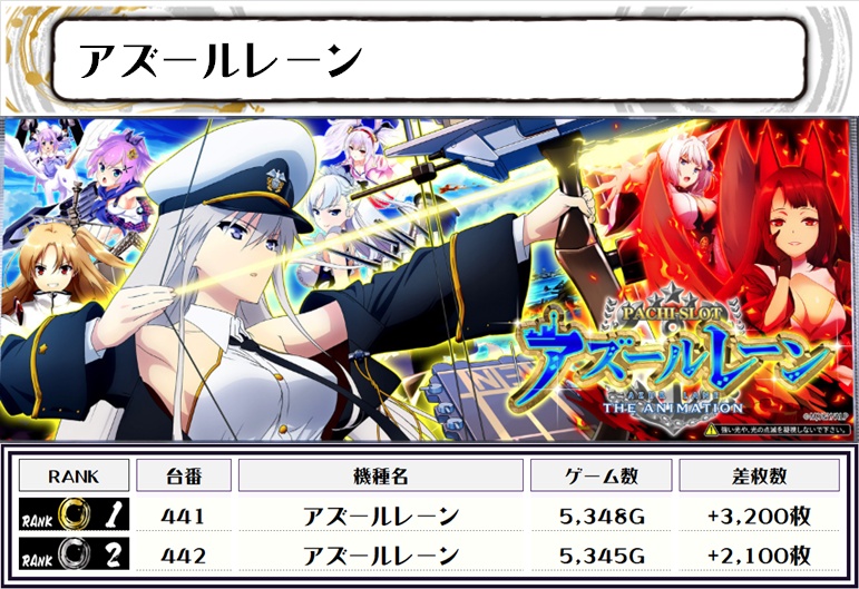 メイン機種だけでなく、新台の【銭形5】や最近人気の【アズレン】からも注目台を発見できました☆