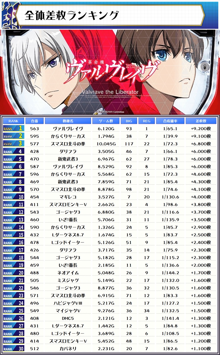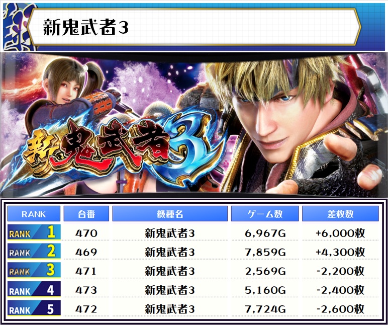 今回の調査では【ToLOVEる8.7】や【鬼武者3】などの機種にも