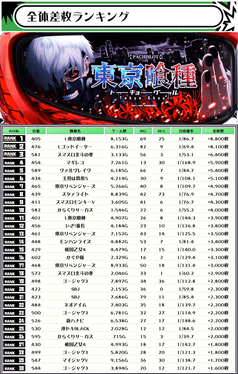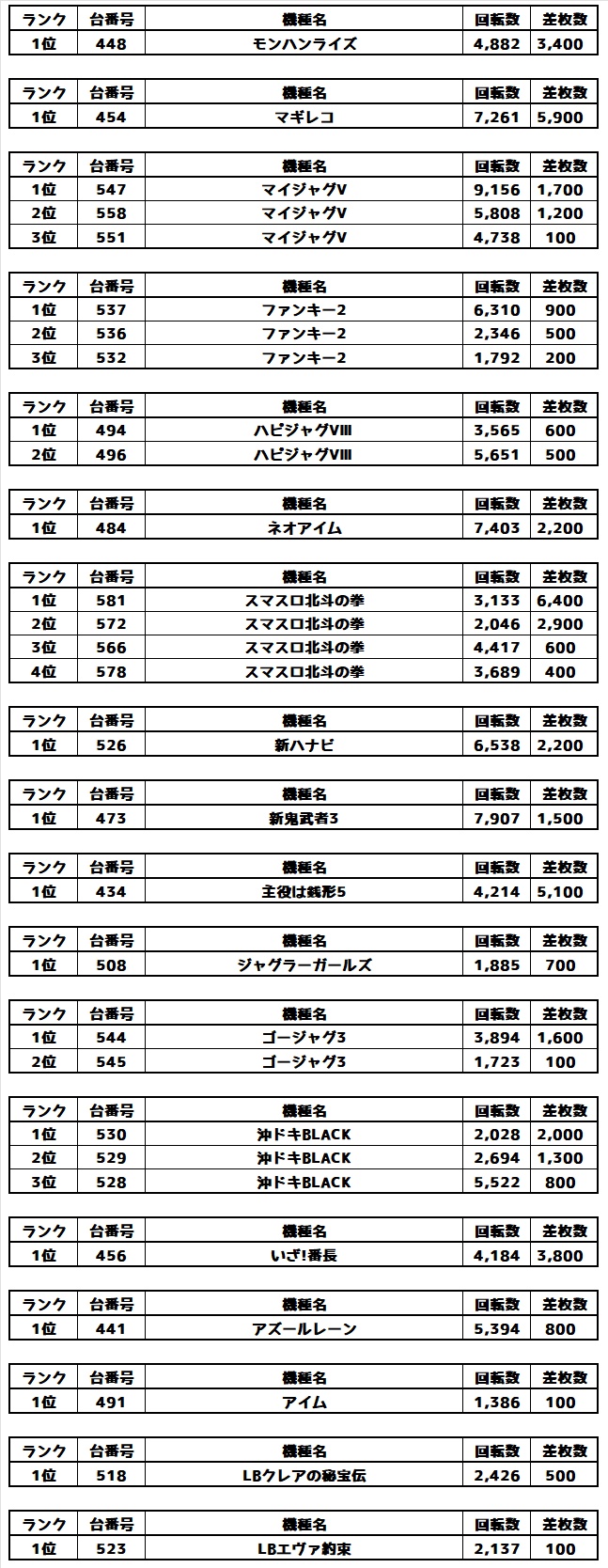 今回の調査では、多台数設置機種に活躍機種が多かったですね☆