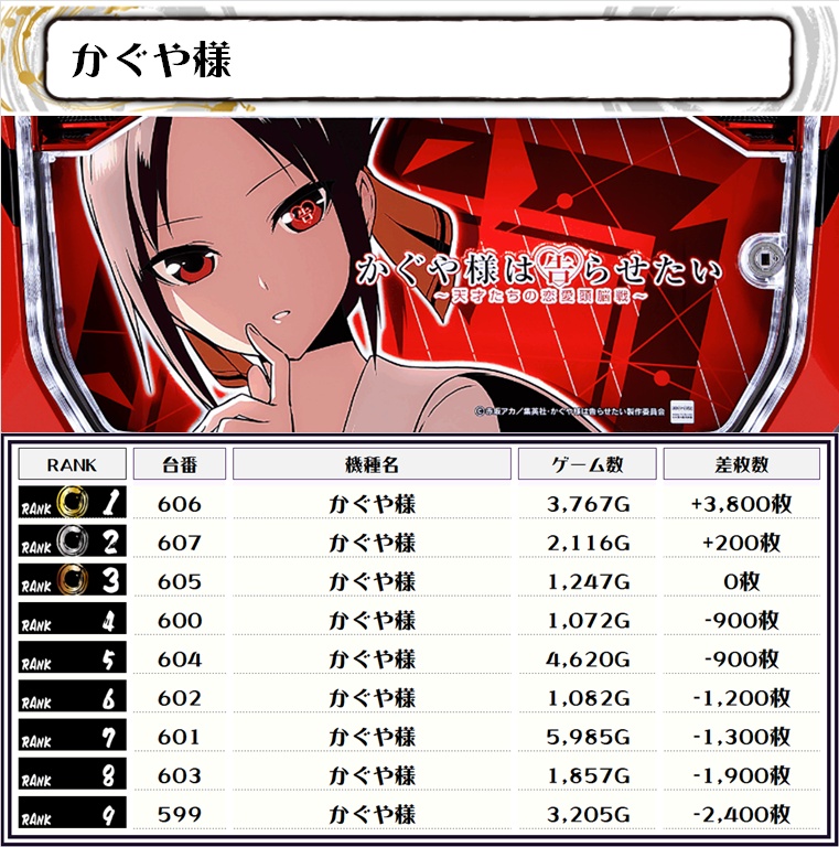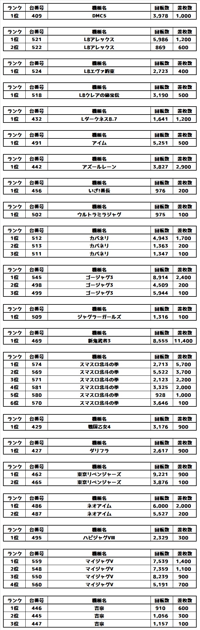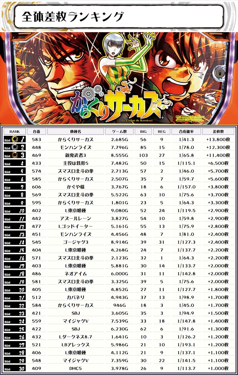 今回の調査では、【喰種】が絶好調!プラス台が多かったですね!