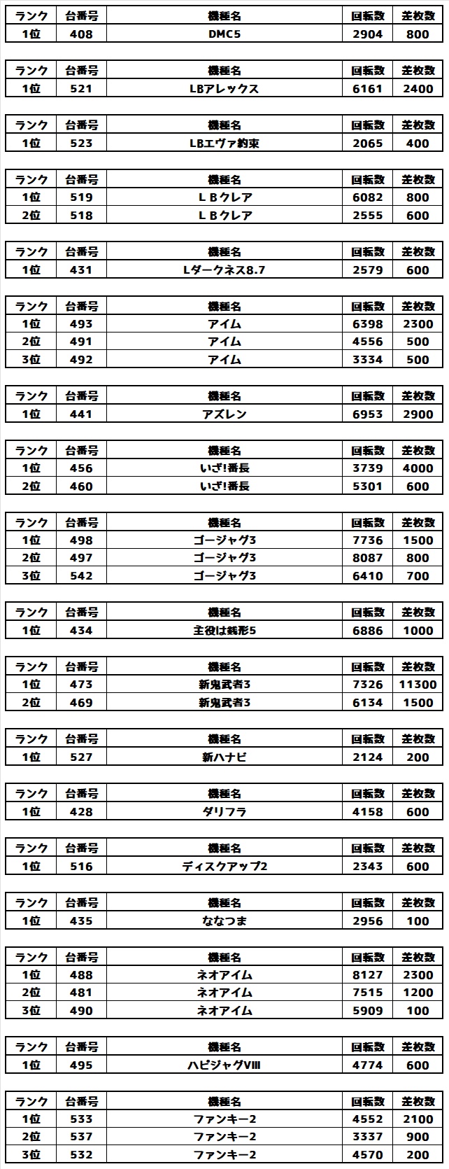 様々な機種で半分以上の台が好調でしたね☆