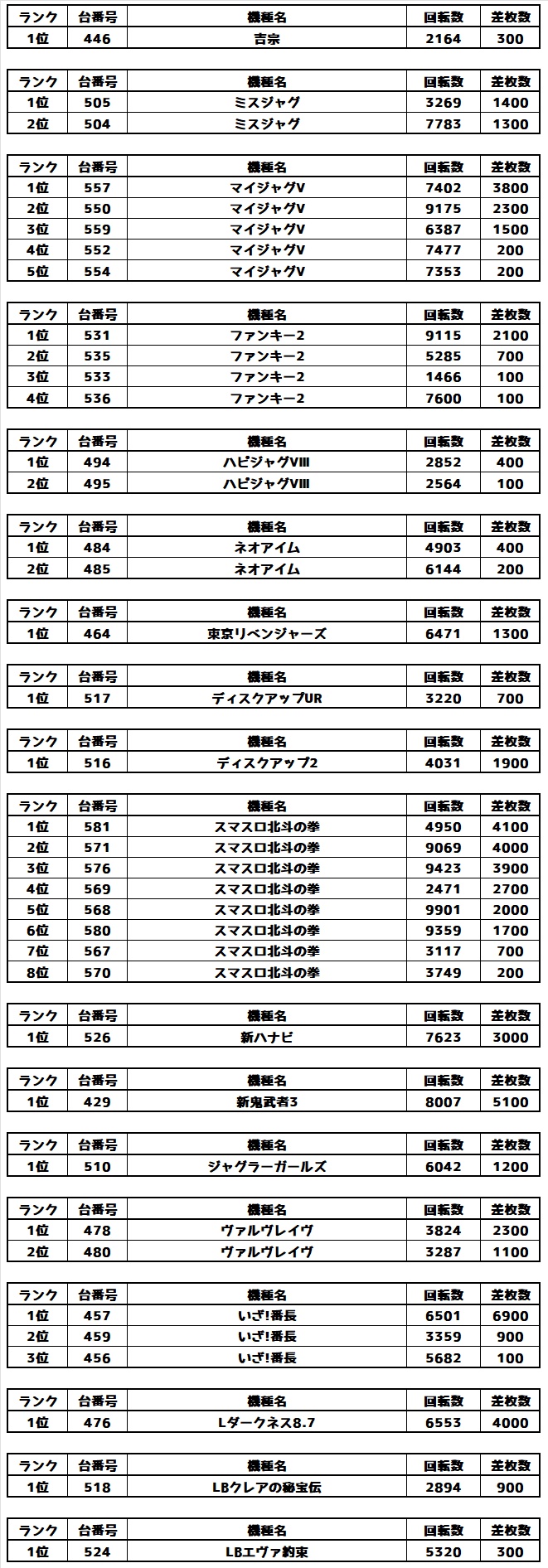 この一台だけでなく、全台調子がよさそうでしたが回転数が少ないのはもったいない気もしますね…