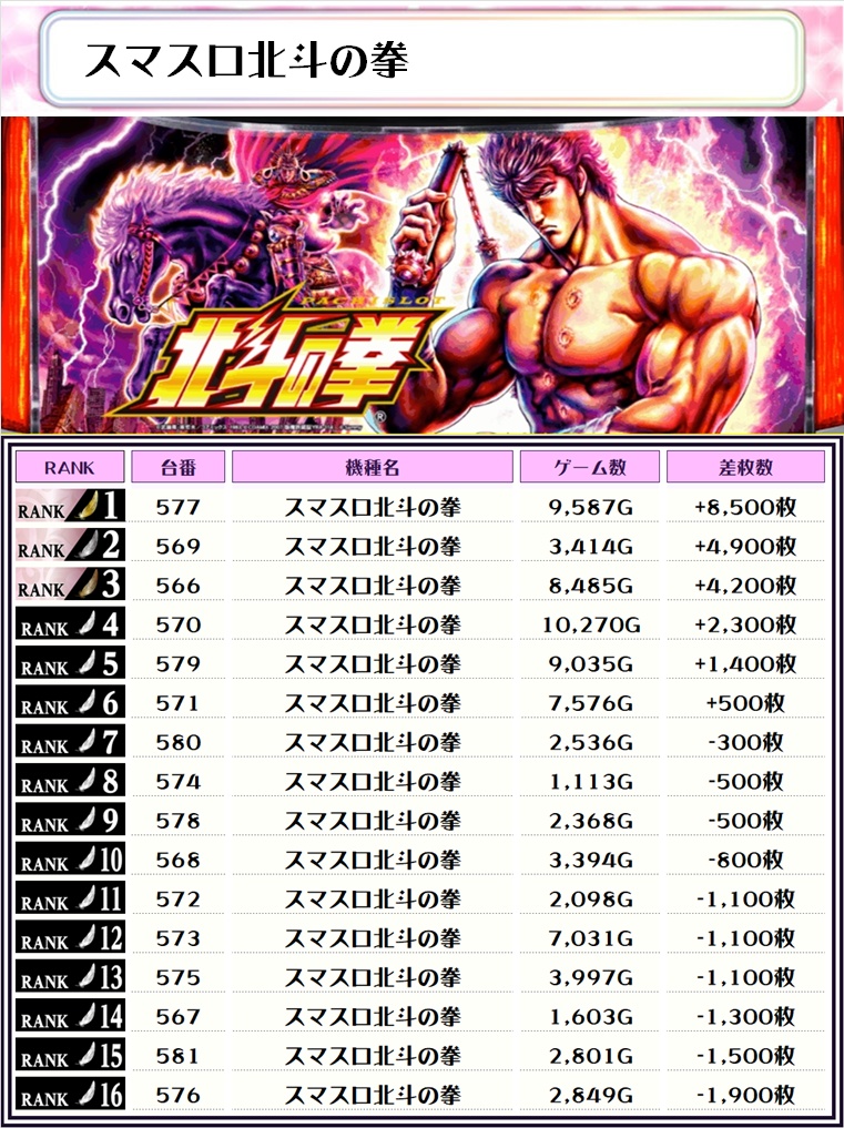 【北斗】からも所々から絶好調な台があり、出玉も回転数も