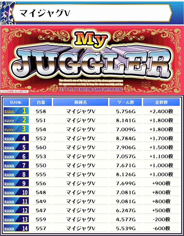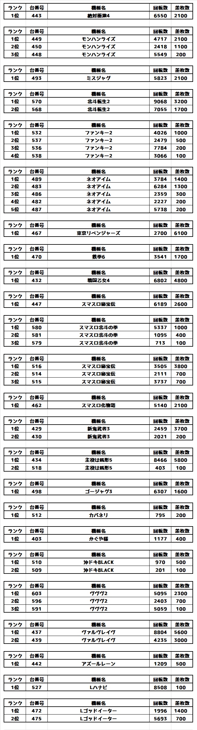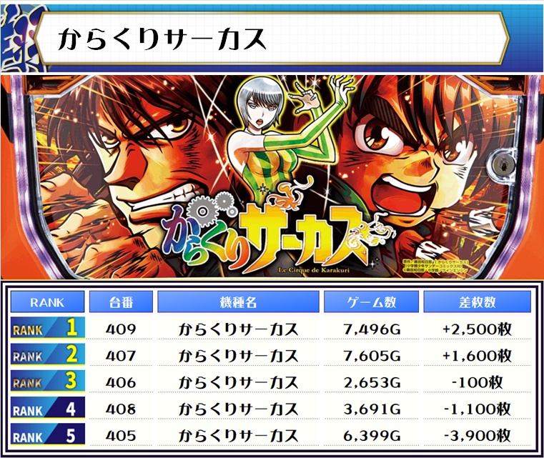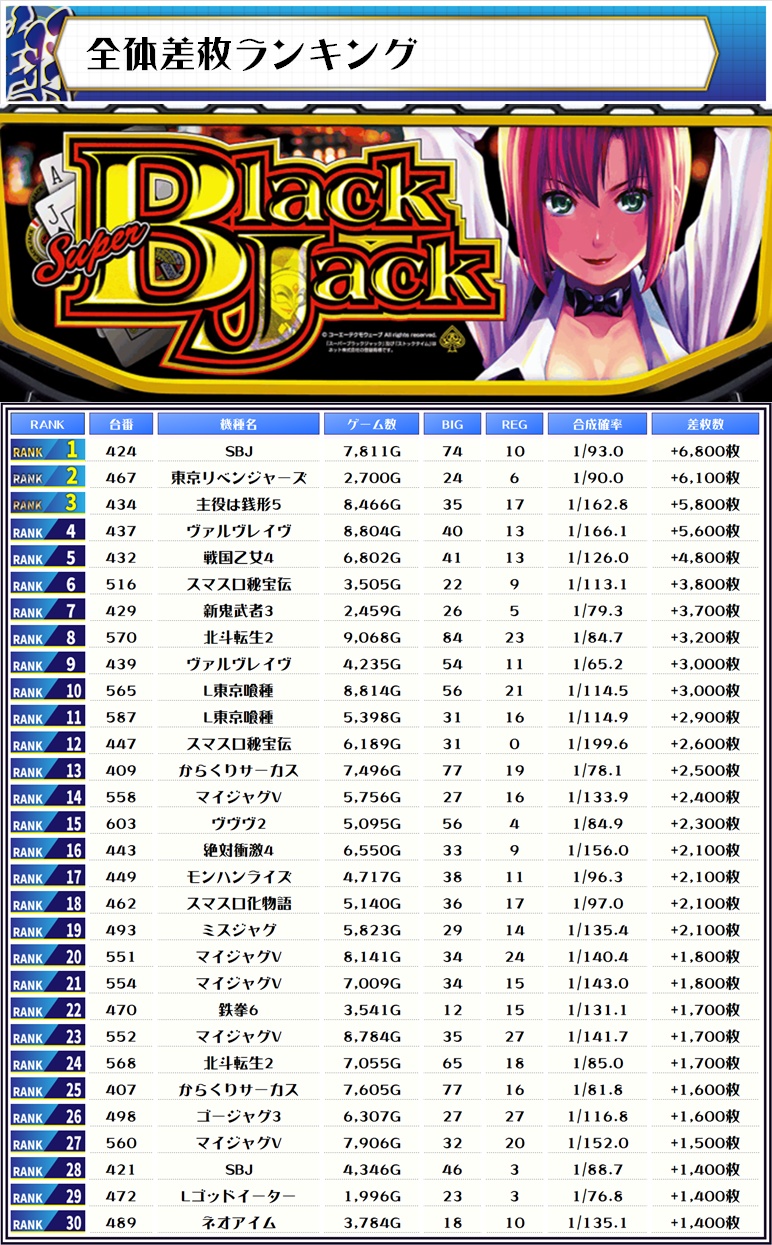 今回の調査は、【からくり】や【SBJ】などおなじみの機種が活躍!