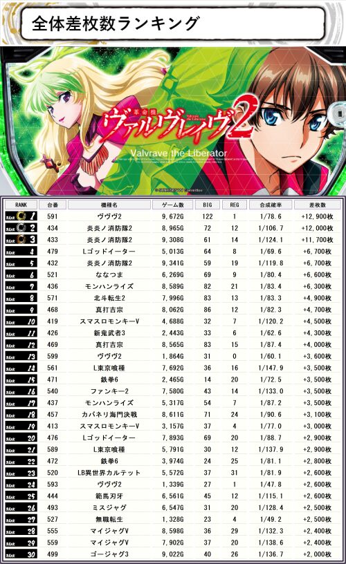 平均回転もさることながら万枚オーバーが2台!