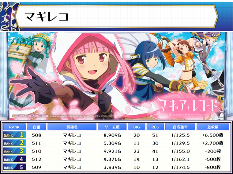 他にもリニューアルで増台したエリアに好調な台が多く、【マギレコ】や【喰種】【北斗】にもいい台が目立ちました☆