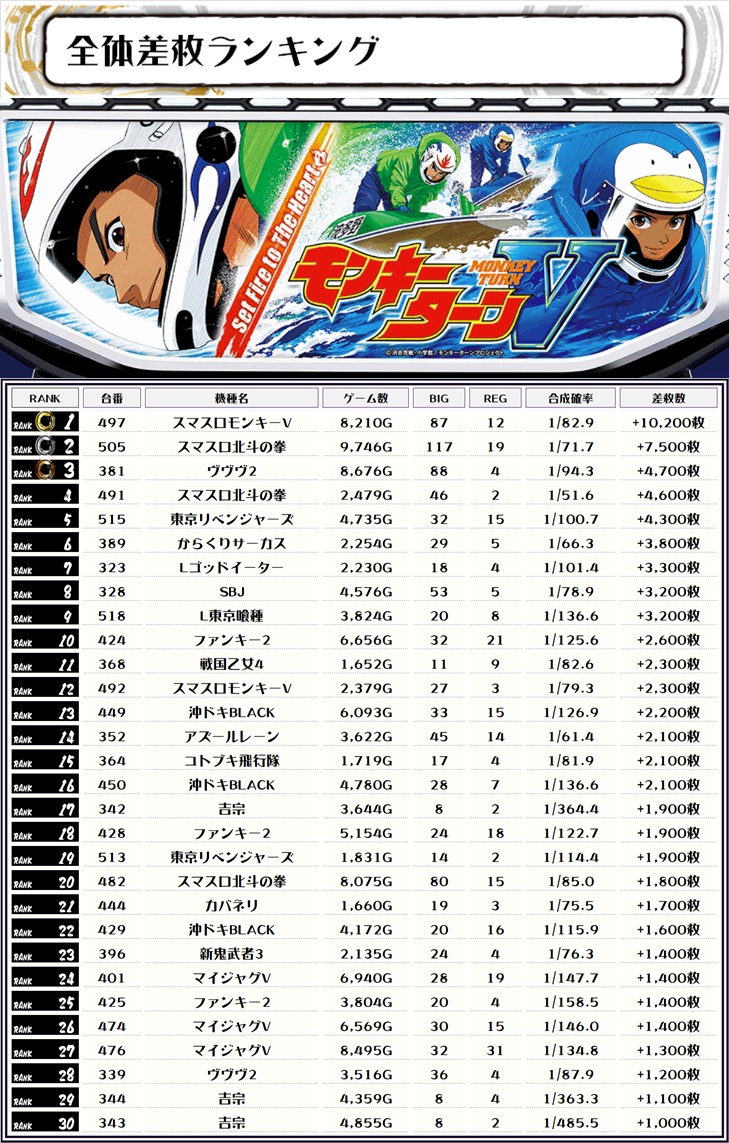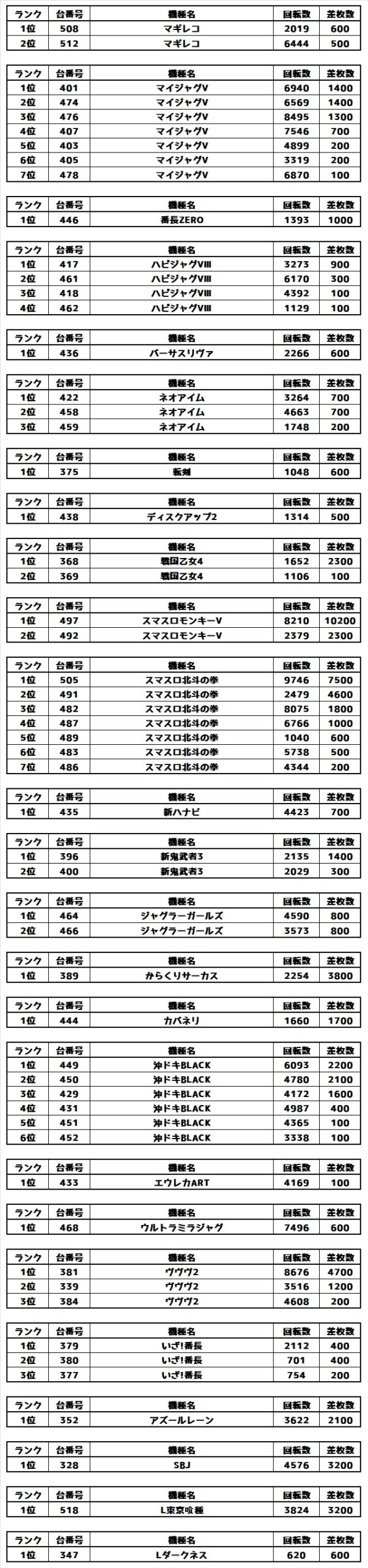 複数台機種に1台以上好調な台がある機種が多かったようですね!