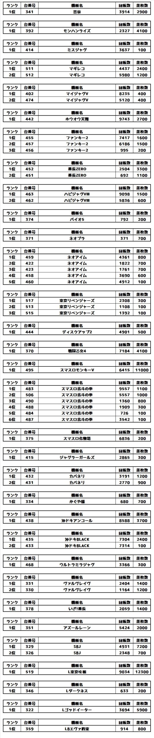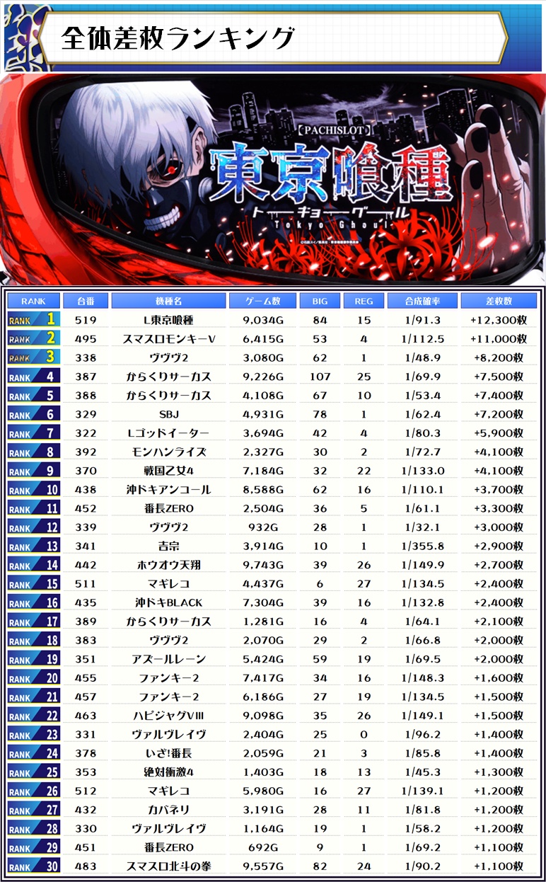 ランキングからも万枚越えの台があり、いたる所に良い台がありました☆
