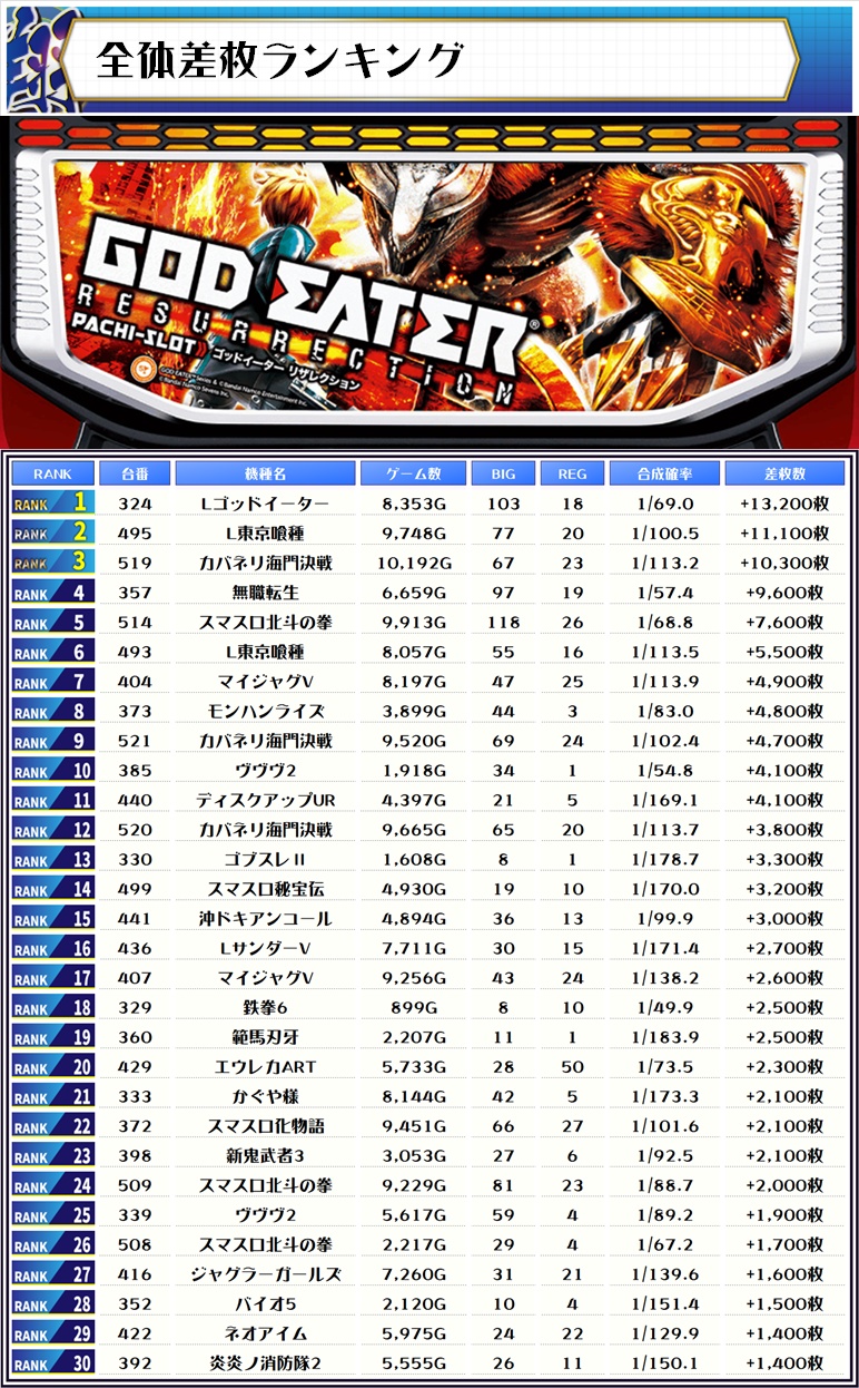 今回は新台の【Lカバネリ】が万枚を超える台もあり、全台大活躍!