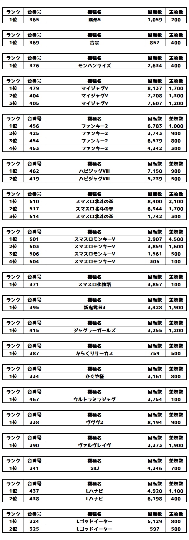 いつも通り回転数がつき好調な台が多かったのがわかりますね!