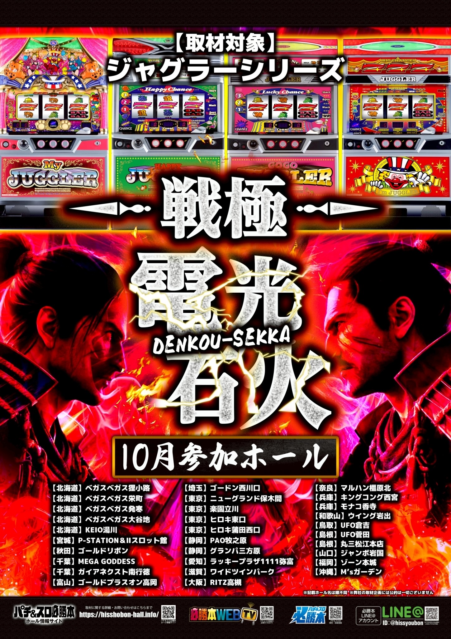 2025年10月も全国で名を馳せるジャグラー自慢のホール約30店舗が参戦‼️