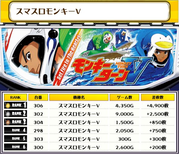 2位には【スマスロ秘宝伝・437番台】の+6,700枚、3位には【スマスロモンキーV・306番台】の+4,900枚がランクインっ🏆🏆🏆🏆