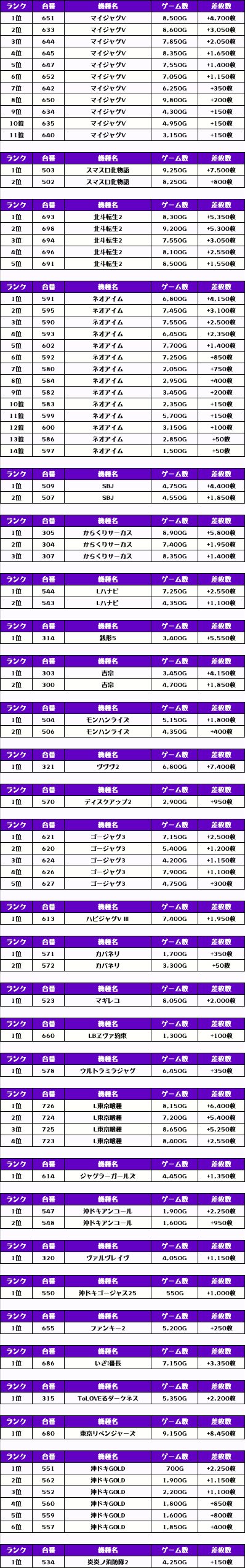 また、この日の注目台差枚ランキングがこちら❗️