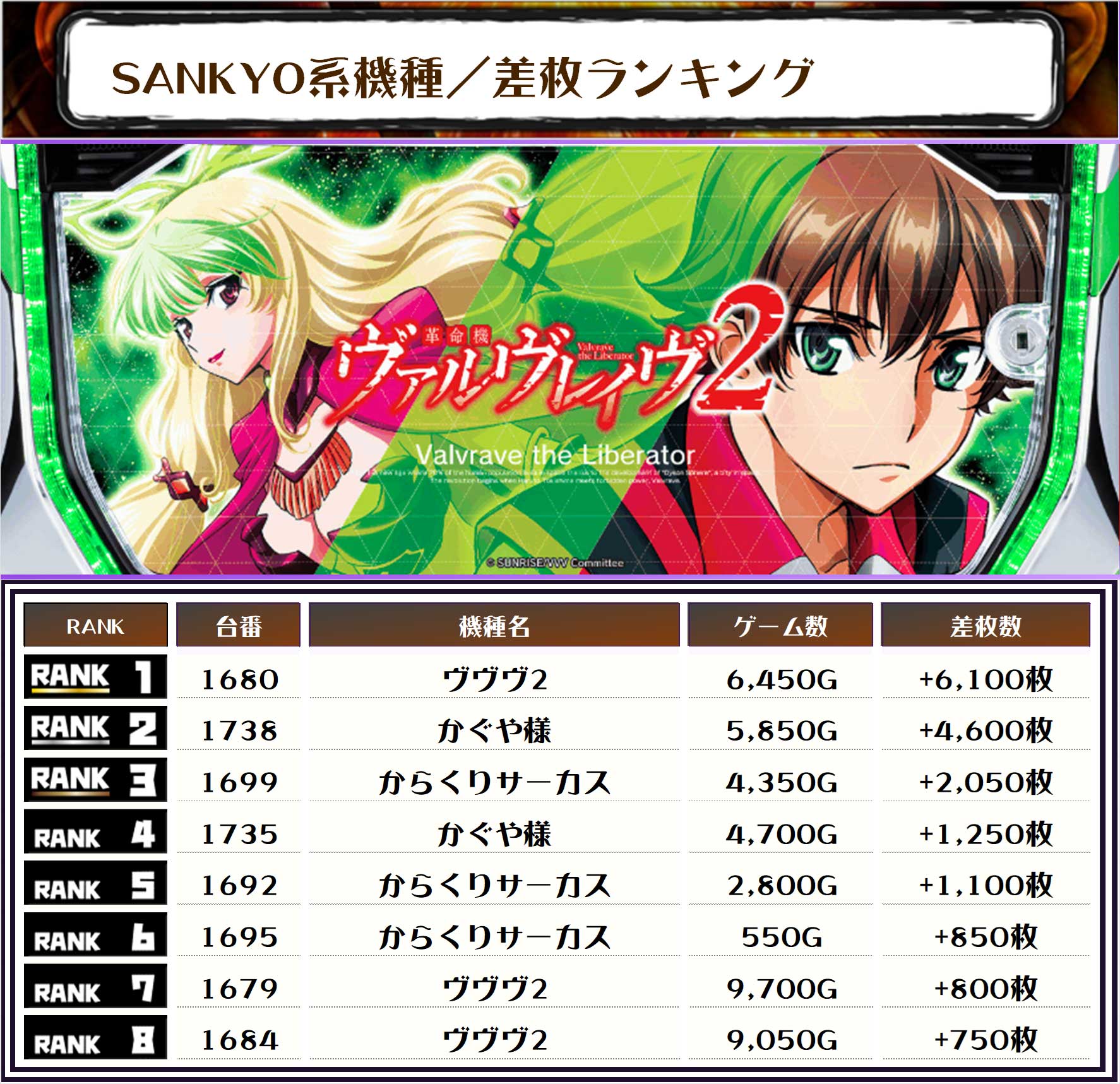 それでは、この日の差枚ランキングをご覧ください‼️