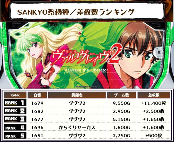 前回はヴヴヴ2・からくりサーカスが主役となる結果でしたが、今回はどの台がランキングを彩るのでしょうか⁉️