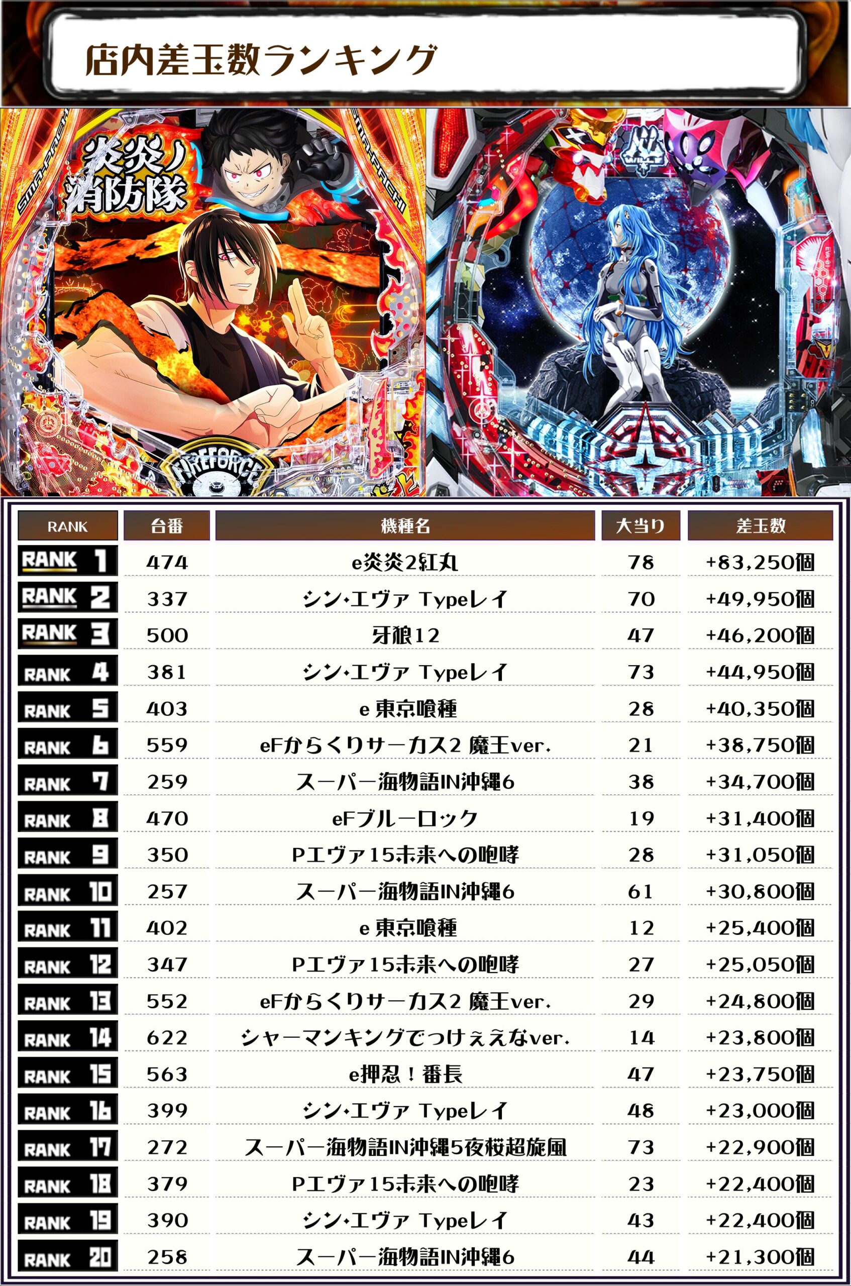 それでは、この日編集部が注目した機種の差玉ランキングをご覧ください