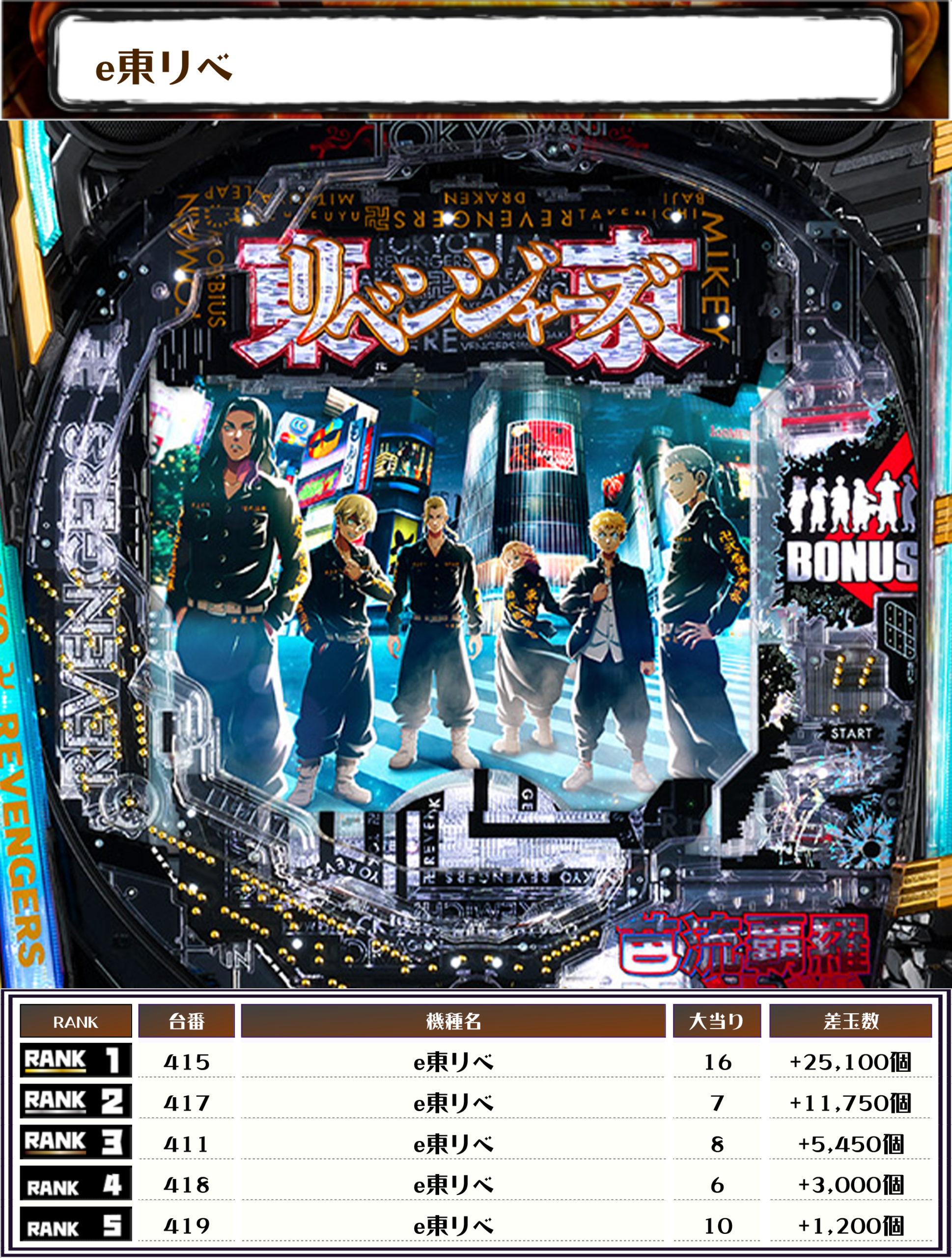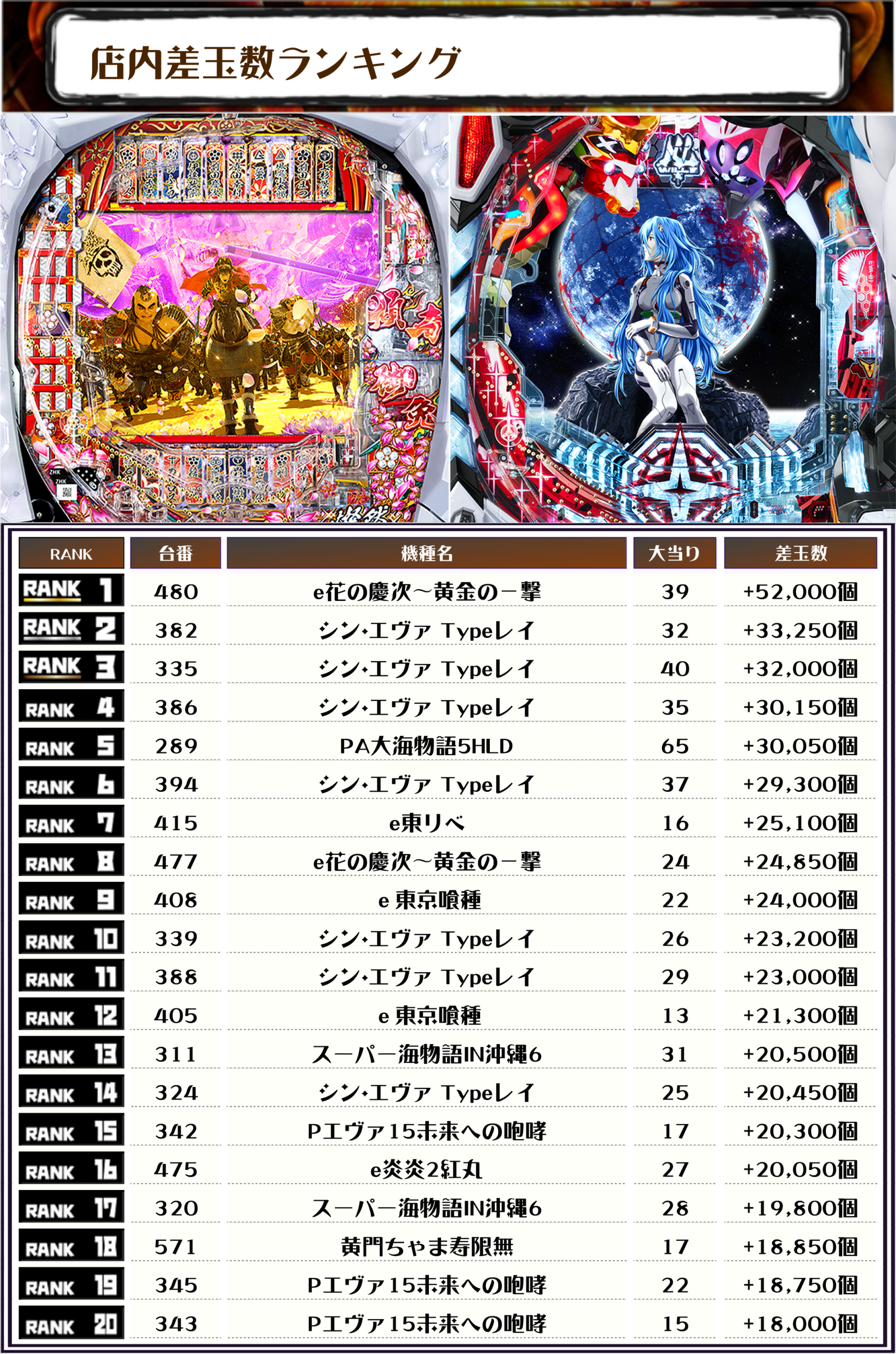 それでは、この日編集部が注目した機種の差玉ランキングをご覧ください