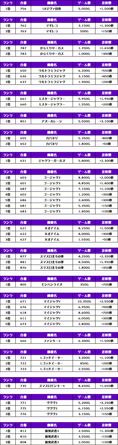 また、この日の店内全台の差枚数ランキングがこちらです❗️