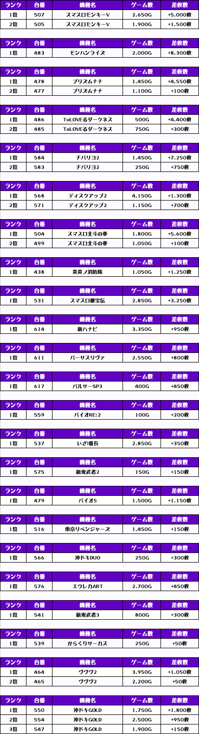 それでは早速【機種別差枚ランキング】からチェックしていきましょう🙆♀️