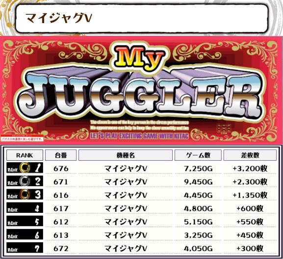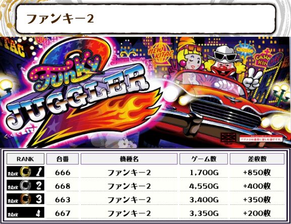 また、ジャグ系はマイジャグVとファンキー2が高稼働でした!