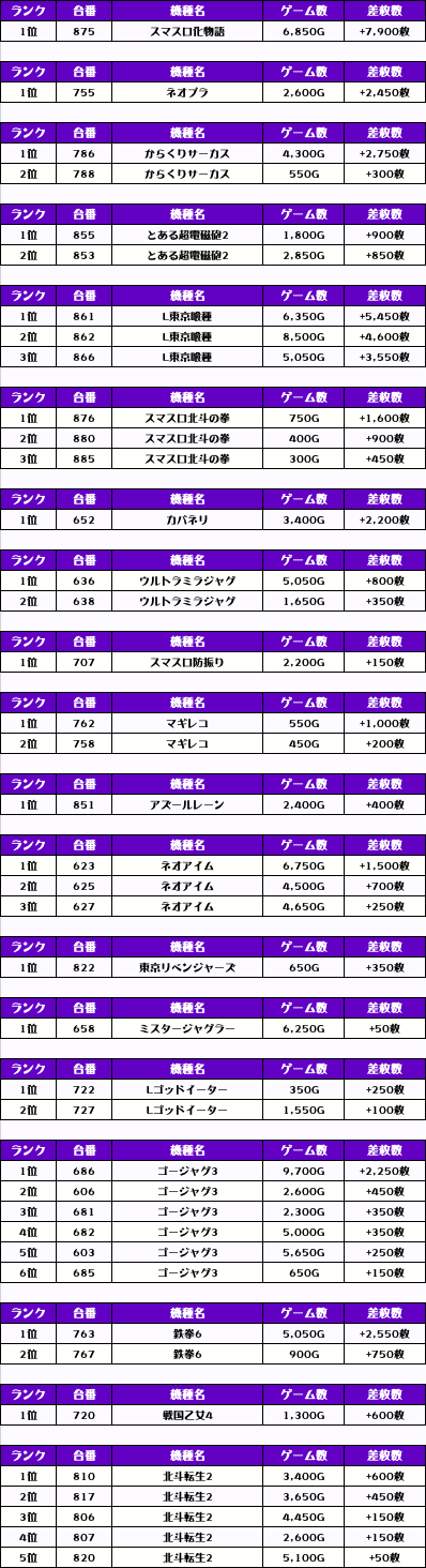 その他の機種の差枚はコチラ