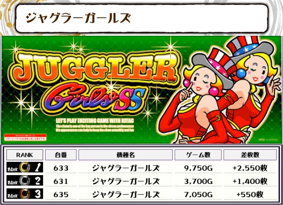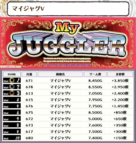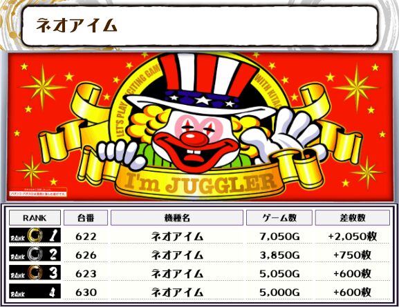 また、ジャグ系は全体的に高稼働がよく、優秀台も多く見られました!