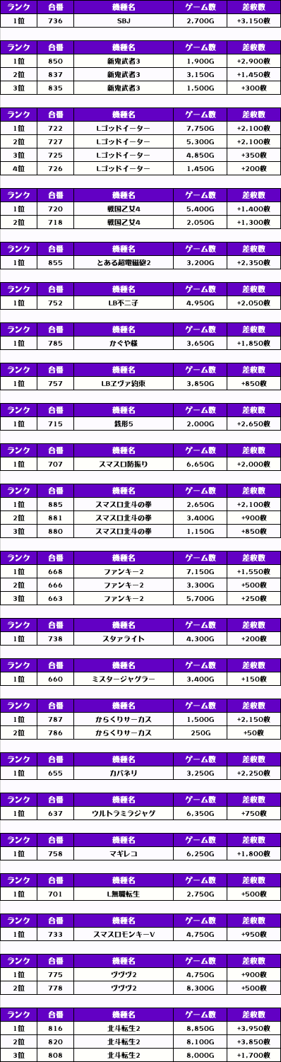 その他の機種の差枚はコチラ