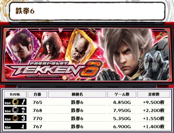 この日、全体の差枚トップに輝いたのは【鉄拳6・765番台】で+9,500枚‼️