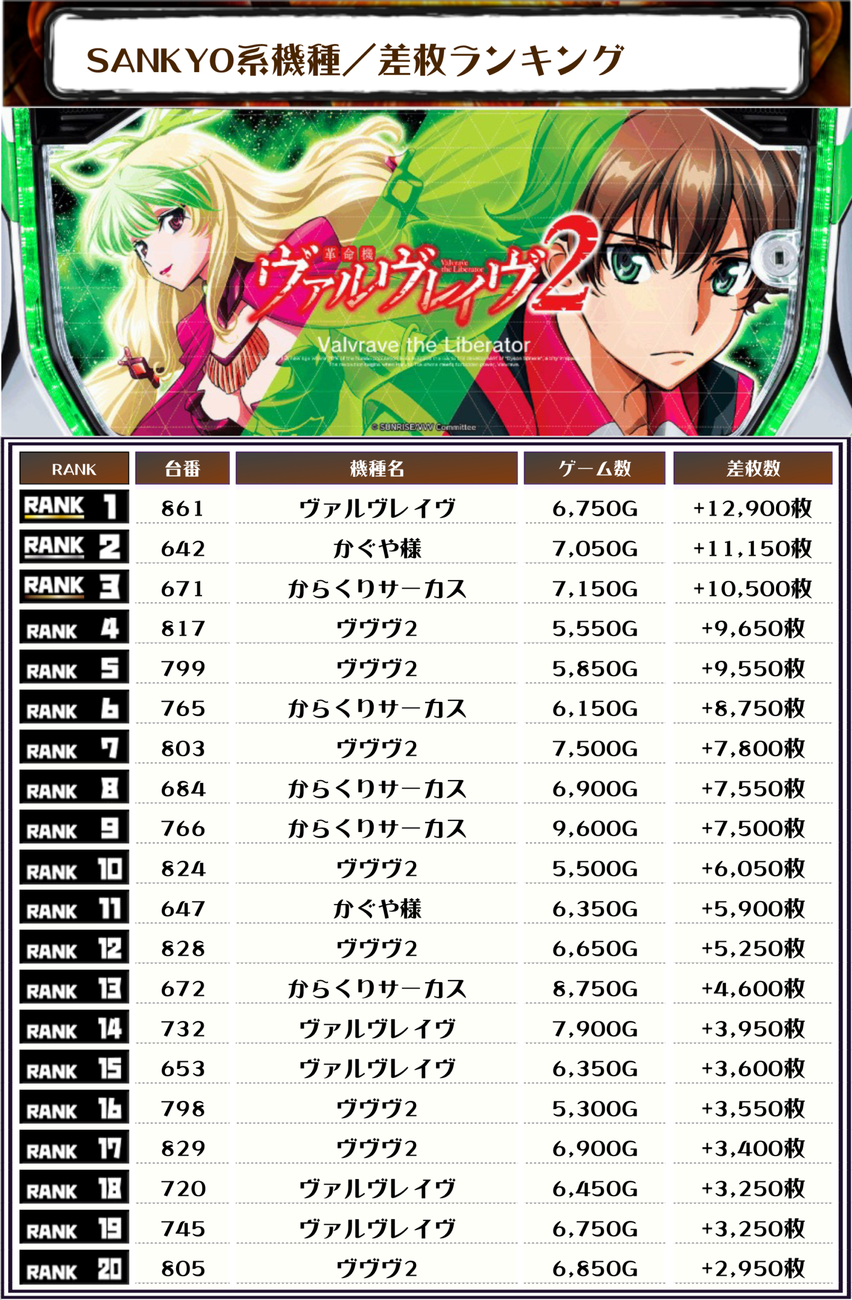 ということで、この日のトップ差枚は【ヴァルヴレイヴ・861番台】で+12,900枚‼️