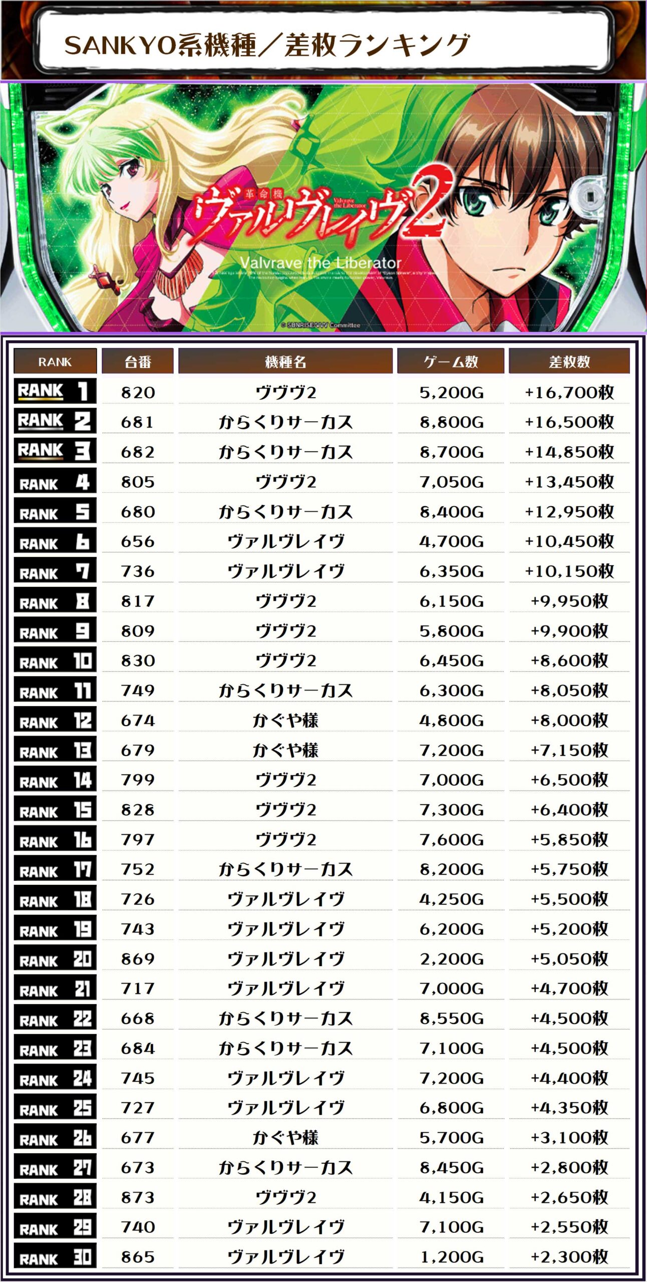 それでは、この日の差枚ランキングを見ていきましょう👍