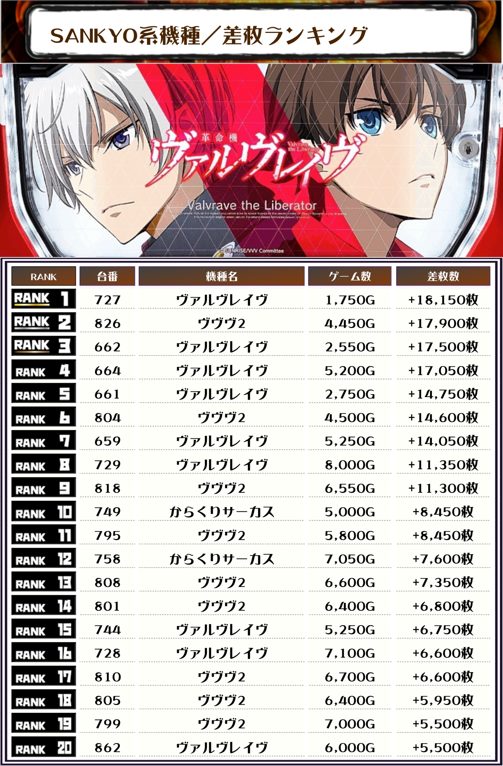 続く2位には【ヴヴヴ2・826番台】の+17,900枚、そして3位には【ヴァルヴレイヴ・662番台】の+17,500枚がランクインですっ❗️