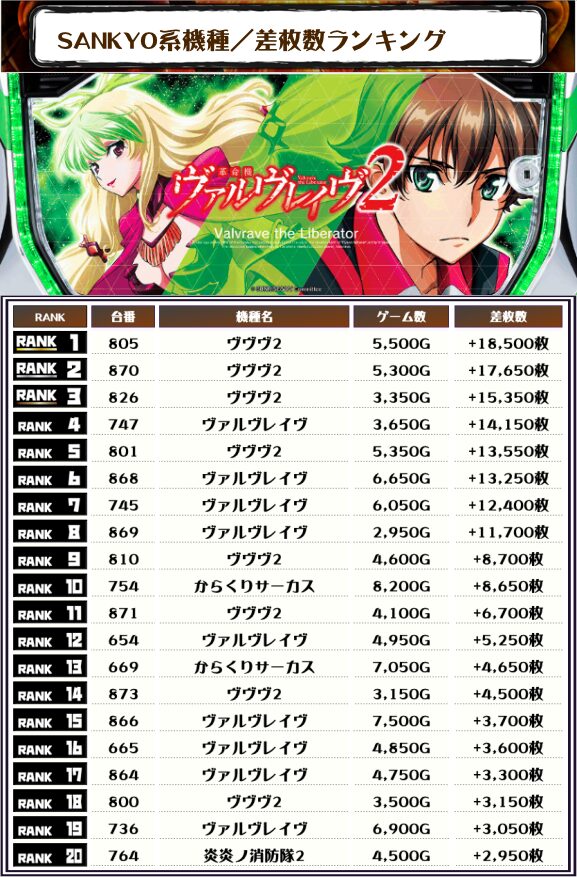 続く2位にも同じく【ヴヴヴ2・870番台】の+17,650枚、そして3位にもこれまた【ヴヴヴ2・826番台】の+15,350枚がランクインですっ❗️