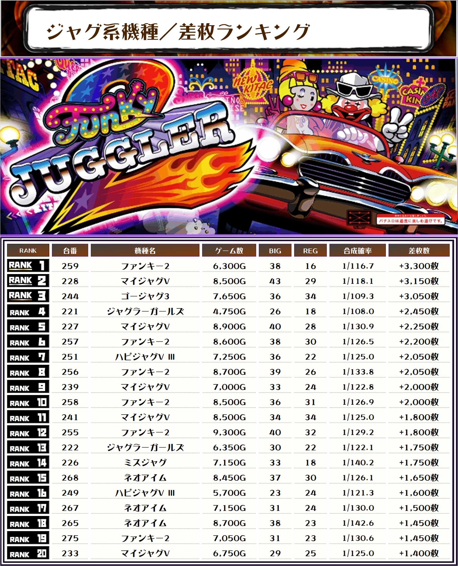 今回のランキングでも、ネオアイム・ファンキー2・マイジャグⅤが大暴れっ💥💥💥
