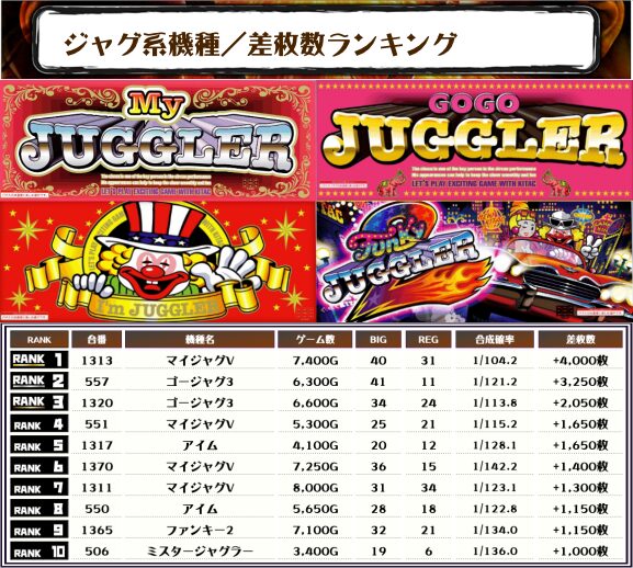 1位のマイジャグVはBIG・REGともに引けていて優秀台だったと言えるでしょう👏