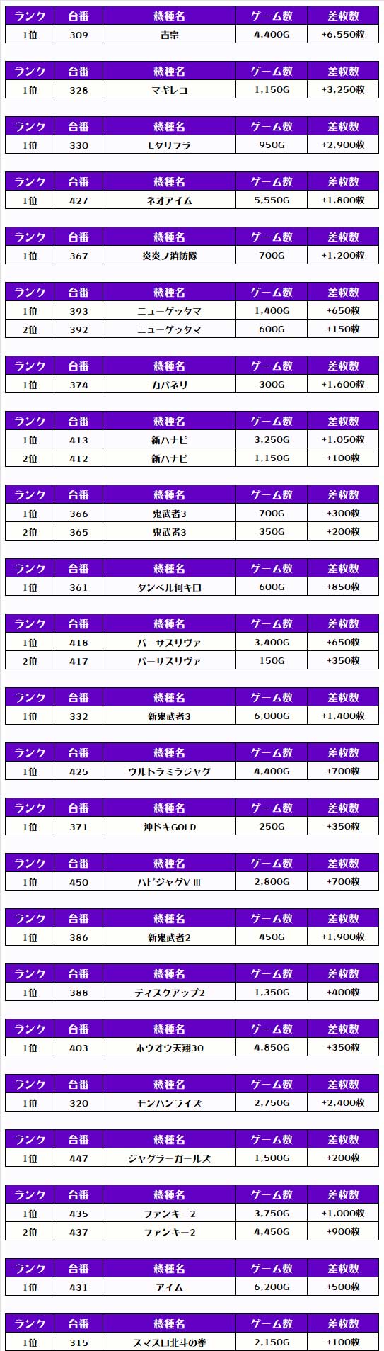 それではこの日の【機種別差枚ランキング】を見ていきましょう❗️