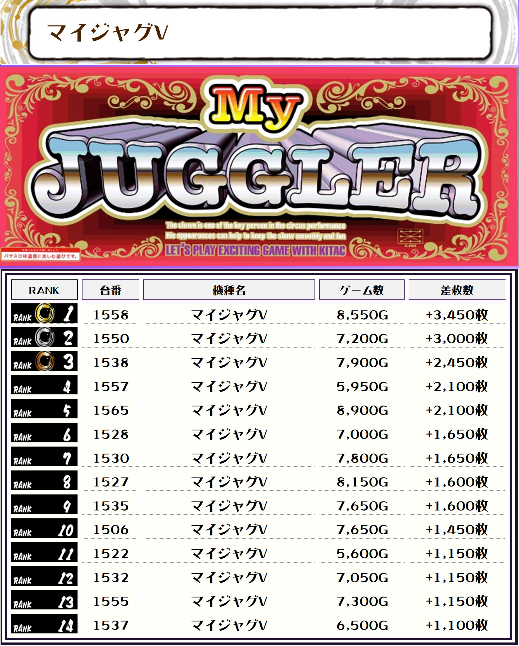 特にジャグラー系は幅広い機種で強化が窺える優秀な結果となったようですっ✨✨✨