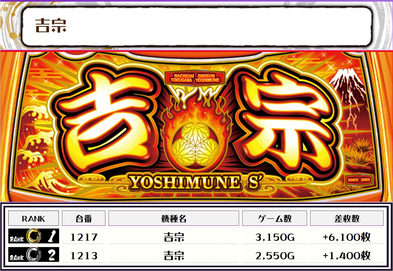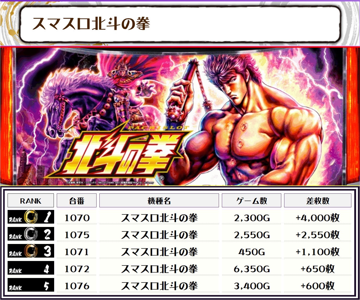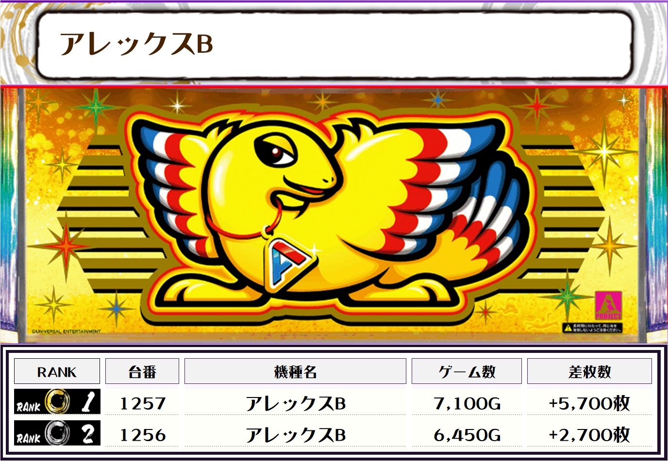 また、この日の店内全台の差枚数ランキングはこちらになります