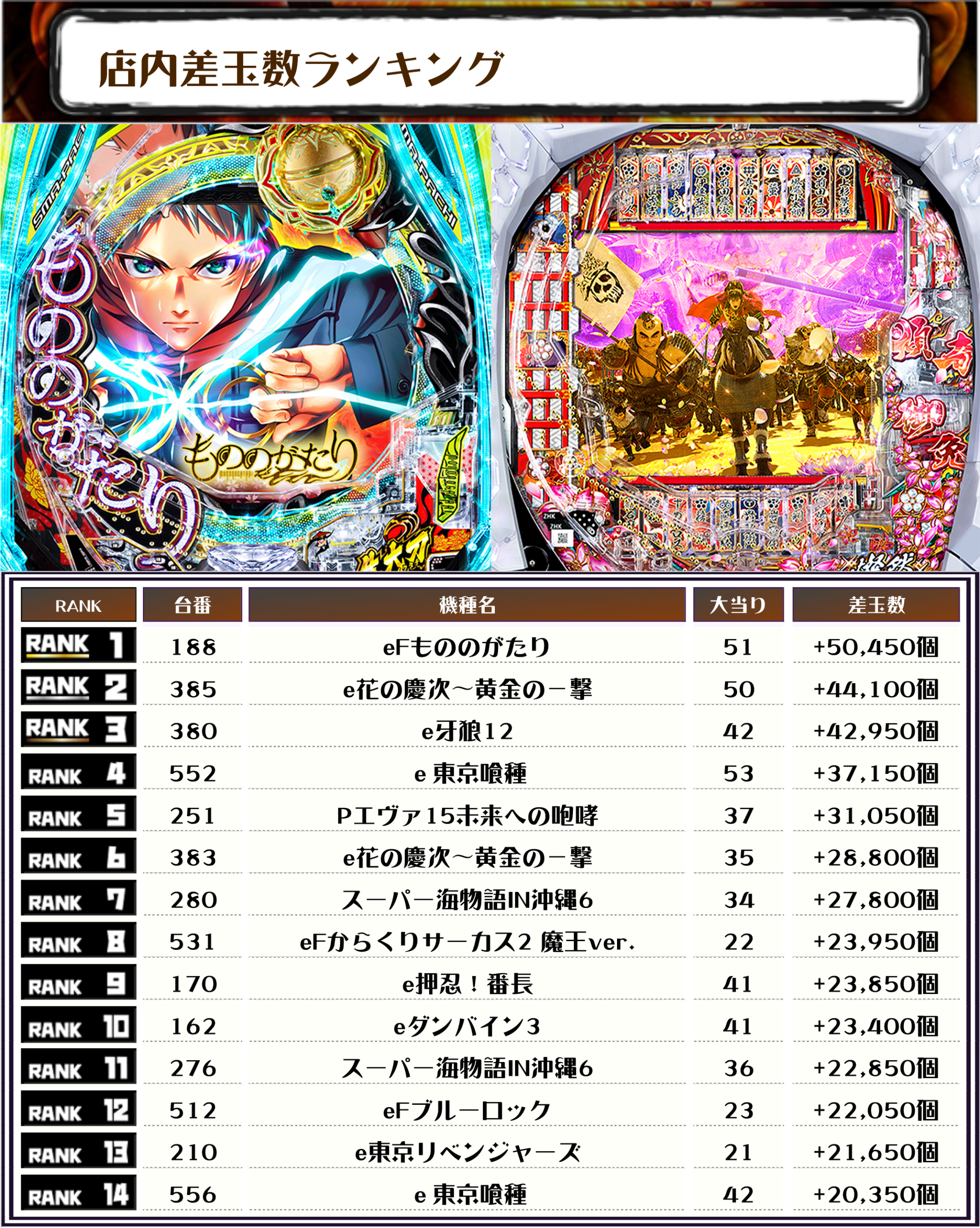 それでは、パチンコ全体の差玉ランキングをご覧ください