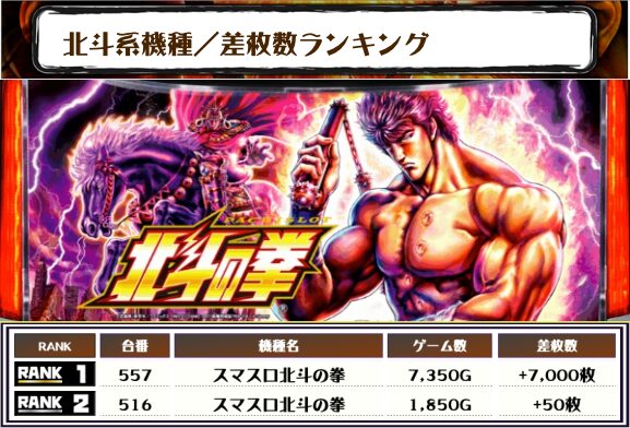 また、2位には【スマスロ北斗の拳・516番台】の+50枚がランクインしました🏆