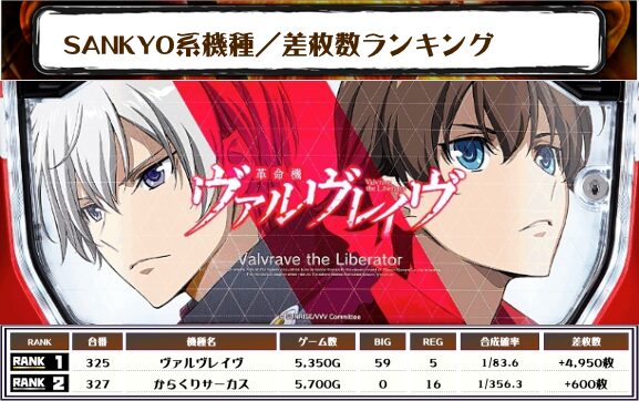 この日のトップ差枚は【ヴァルヴレイヴ・325番台】の+4,950枚