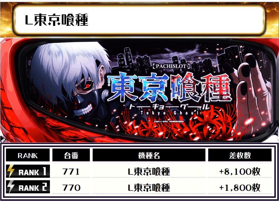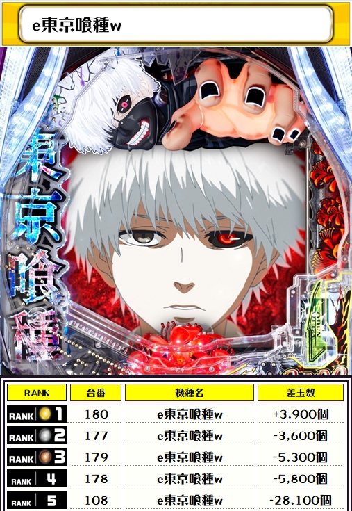 そしてパチンコの対象機種だった【東京喰種】ですが、状況は良かったものの結果が振るわず不発に…。次回のリベンジに期待しましょう!