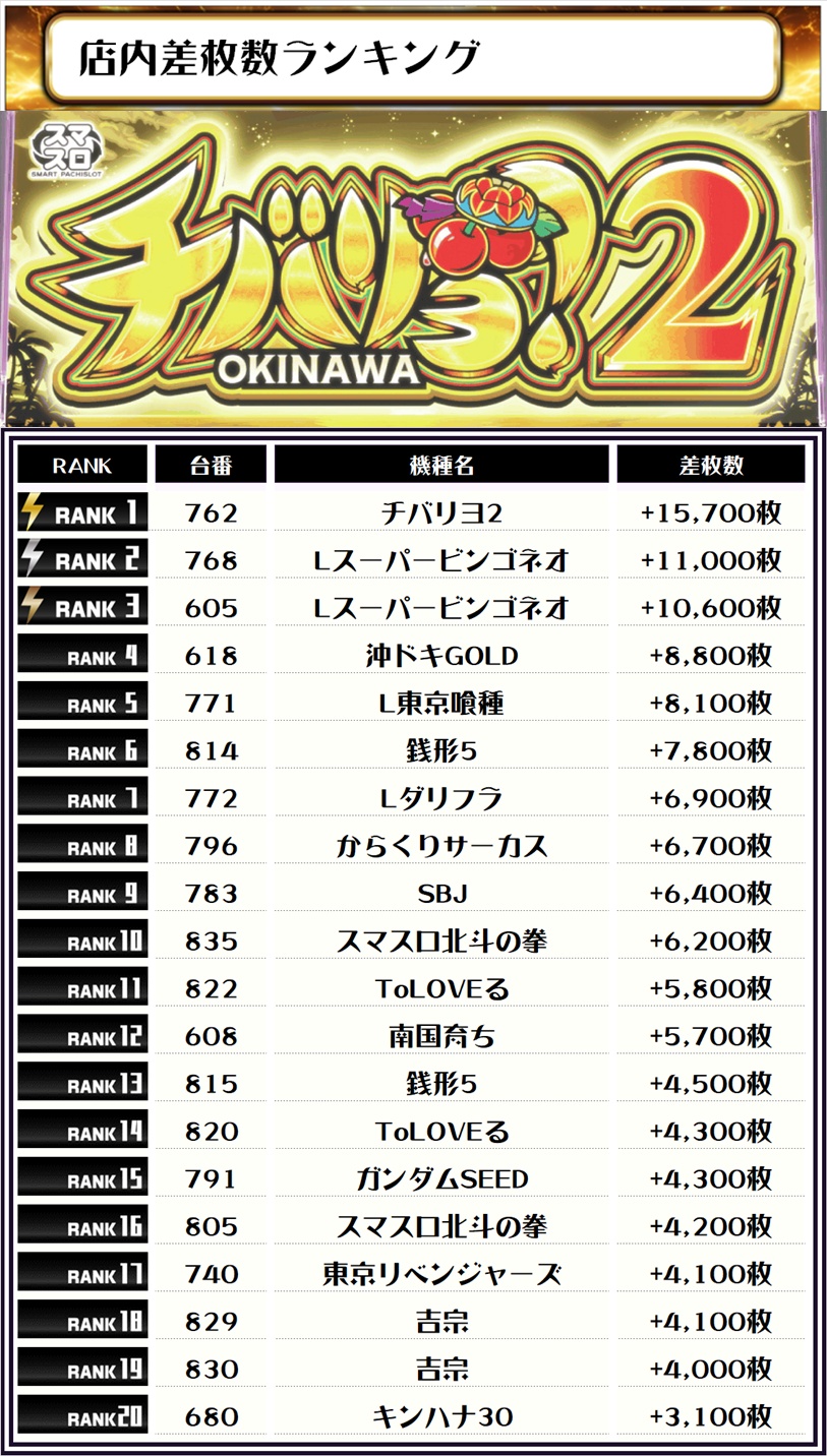 それでは【機種別差枚ランキング】をチェックしていきましょう🙆♀️